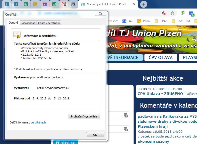 Ode dneška náš web běží na https protokolu (a ne na http jako doposud). Autorizační certifikát je zdarma a měl by se automaticky obnovovat.