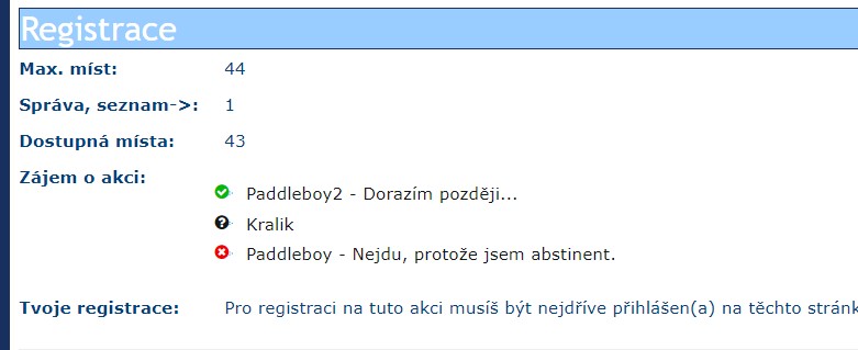 - nově zobrazuje váš komentář, který můžete napsat při registraci přímo ve výpisu lidí, kteří jsou přihlášení (nebo "nepřihlášeni") viz obrázek.