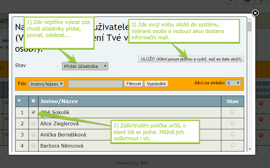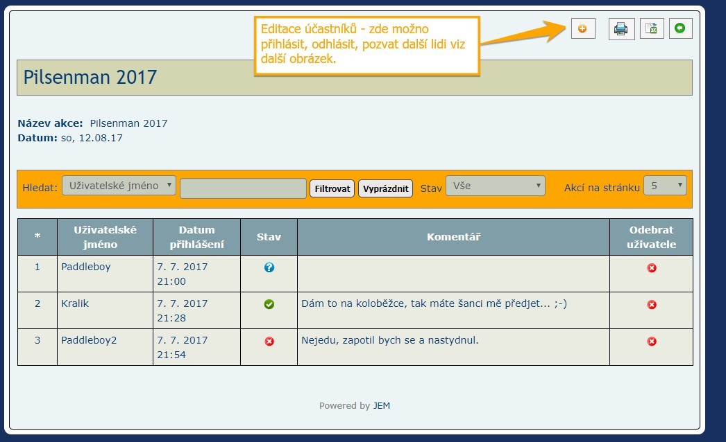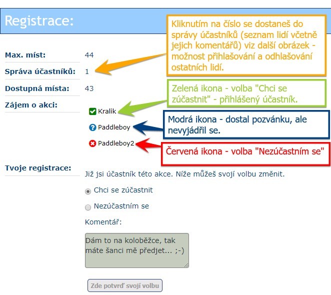 - Od teď má každý přístup do výpisu přihlášených lidí, kde jsou vidět i jejich komentáře (dosud mohl pouze vedoucí akce).
